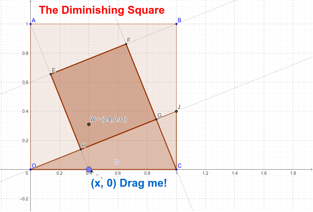 ©2019 Compass Learning Technologies ← Live Mathematics on the Web ← GeoGebra Showcase ← The Case of the Diminishing Square