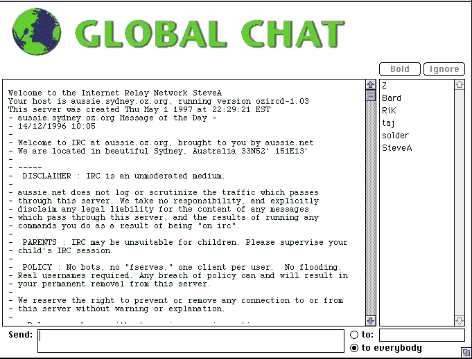 IRC software is freely available from the Internet and there are a growing range of sites to which teachers and students can "log on" and create private discussion "channels." Text-based chat is fast and simple to use. Even more exciting are free programs such as Microsoft's NetMeeting which offer full conferencing facilities: electronic whiteboards which allow all chatters to display their ideas, audio and video-conferencing facilities, allowing dynamic interaction as well as text exchange: all these features are freely available now for use by teachers and their students. Chatting with friends was never easier, nor more exciting.Table of Contents