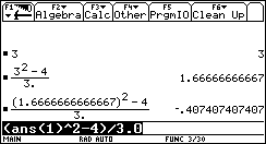 Students may investigate such equations, especially their application to approximation methods of equation solving. Try entering a guess, and then using the ans feature of any graphic calculator in this formula to observe the effect of repeated applications. What might be advantages and disadvantages of such a method? How “good” does your first guess need to be? Could such a method be used to solve any equation?