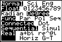 Generally, in the junior school, the MODE screen should look like the example shown (using degrees rather than radians).
