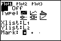 Choose STAT PLOT (2nd Y=), select Plot 1 and set it up as shown.