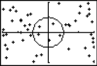 - How many points landed inside the circle (if a point lands on the circle, flip a coin to decide if it is in or out)?