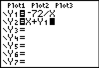 - In Y1 enter ac/x. In our example this becomes Y1 = -72/x.