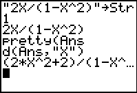 adds symbolic derivative and arclength functions) and Algbr (offering, among other things, a symbolic Simplify command and a Pretty command, which links in with the PrettyPrint app).