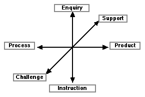This paper examines the nature of this complex construct. It proposes a simple model, identifying effective mathematics teaching with the creation of a learning environment which strikes a balance between instruction and enquiry as one dimension, between process and product as another, and between challenge and support as a third critical dimension. Figure 1 offers an illustration of such a model. Note that this three dimensional view is not intended to be exclusive. It does not suggest that there are not other dimensions associated with effective mathematics learning. It merely draws attention to three aspects of mathematics teaching and learning which are considered significant. In particular, it places the third dimension, that of challenge and support, within a context defined by the other two more familiar distinctions.