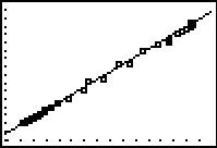 Students should discuss what they see: why is the line very close to being straight. Press TRACE and have students observe the motion of the cursor as it traces through the 45 seconds, but jumps around the graph screen. Explain what is happening.