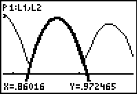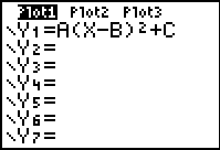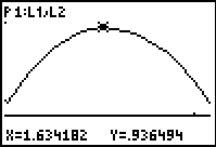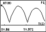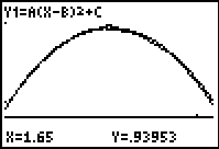 Finally, conduct a ball bounce experiment, using the motion detector. Each bounce is an inverted parabola. Have students isolate one of the parabolas and attempt to match a quadratic function, taking note of such features as the coordinates of the maximum turning point. Suggest the use of the quadratic form Y = A(X – B)2 + C as the basis for their model, and have them record from their graph the coordinates of the turning point, as shown.