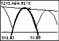 A little trial and error with the values for A, then, leads to a good model for the motion. Changing the viewing window allows students further practice as they repeat this exercise for the other parabolas available from the ball bounce.