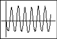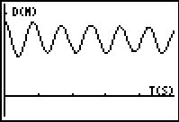 The two sinusoidal curves shown below are derived from two entirely different sources. The data for the first is collected using a microphone probe, with someone singing a clear steady note. The settings are the default settings chosen by the DataMate App when it senses the microphone probe, collecting 200 samples at intervals of 10-4 seconds (1000 samples per second), hence the experiment only lasts for 0.2 seconds.