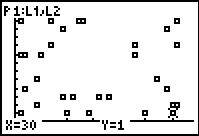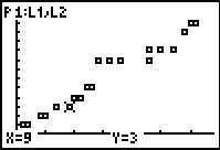 Then set the scatter plot to display L2 and L3, and the result is quite effective. Discuss with your class why this graph-type might not be appropriate for the data in L1.