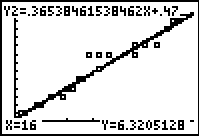 It is now appropriate to introduce the concept of zero correlation – students will immediately appreciate this concept. Note, too, that if the points are TRACED, then each member of the class has a place on the screen! Ask them to observe their spot, and think about what that means.