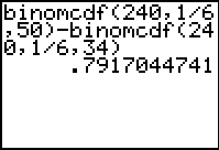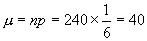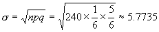Clearly this is an example of a binomial distribution in which n = 240, p = 1/6 and q = 5/6.