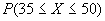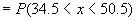 Perhaps even simpler: use the binomial cumulative distribution function to find the total probability up to 50 terms, then subtract the total up to 34 terms, leaving the probability between 35 and 50.