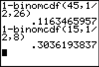 Thus the normal approximation gives an answer which varies from the “correct” answer by only about 0.4%. It should be pointed out that using the normal distribution capabilities of a graphics calculator makes the conversion to “z-scores” unnecessary, although the conversion was done in the example above.