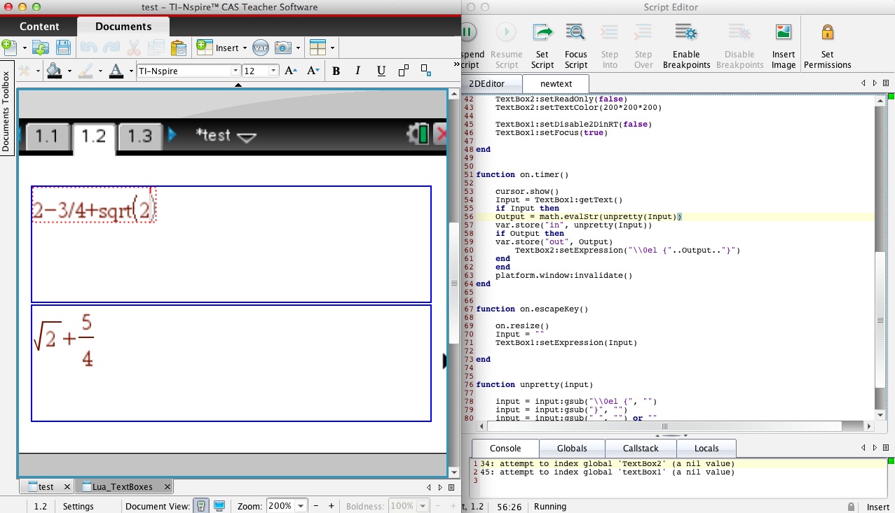 We could create our own TI-Nspire-based calculator in Lua and try all sorts of neat things with the results, prototyping your own ideas for your students learning.