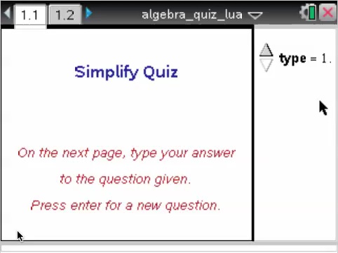 This document uses the Polynomial Toolkit. You may note that as you type in an algebraic expression, it is automatically formatted as you type. The variable is picked up by Lua, sent back to TI-Nspire to be formatted using the xpress function, then back to Lua for display!