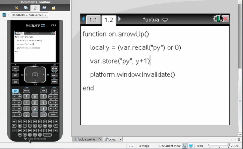 Because this is a Quick Start, we will use the wonderful TIDE.tns document to quickly and easily create and test our script right within TI-Nspire. In the lesson documents downloadable from the link above, you will find a blank read-only TIDE document, as well as the completed version. Remember: create your script in the first page of the TIDE document and it will be automatically run on page 1.2.