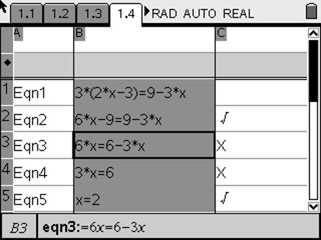 Here we have equations stored to variables and, as students enter each step of the equation solving process, a simple function checks what they enter against the previous entry and verifies that they have not made an error. Even with the non-CAS form, however, quite useful algebraic work may be achieved in this often-overlooked application.