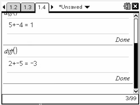 Next we go back to the original challenge - for students to combine and simplify mixed signs, but first we need to add the positive sign to those numbers greater than (or equal to) 0. This involves setting up a new question (used for display) and a new answer.
