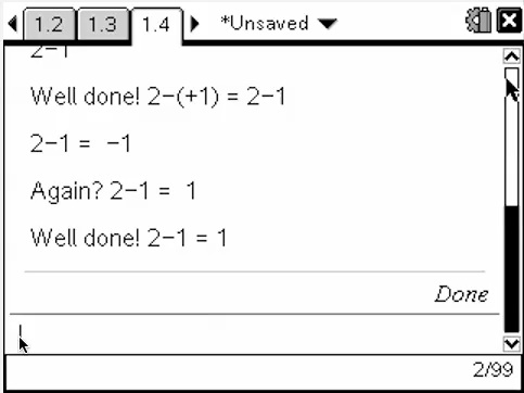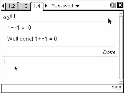 Under the 2.0 release, programming on the TI-Nspire platform has gained great new functionality in the form of dialog boxes for display and input. Using the "Text" "Request" mad "RequestStr" we can now engage students interactively in a "safe" environment which completely restricts the opportunities for users to "mess up" the prepared document.
