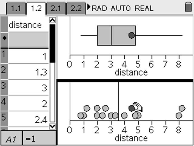 Drag points from the dot plot to observe the effect upon the box plot and the original data set.