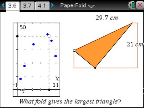 Who would have thought that there could be so much mathematics in simply folding a piece of paper? This activity spans the years of secondary school, beginning with measurement, data collection and interpreting scatter plots in the early years, through linear functions, Pythagoras' Theorem and trigonometry, right through to calculus in the senior years.
