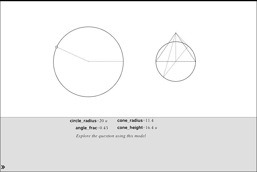 Assume I will make the cone by cutting a sector from a circle: what angle must I make this sector? |